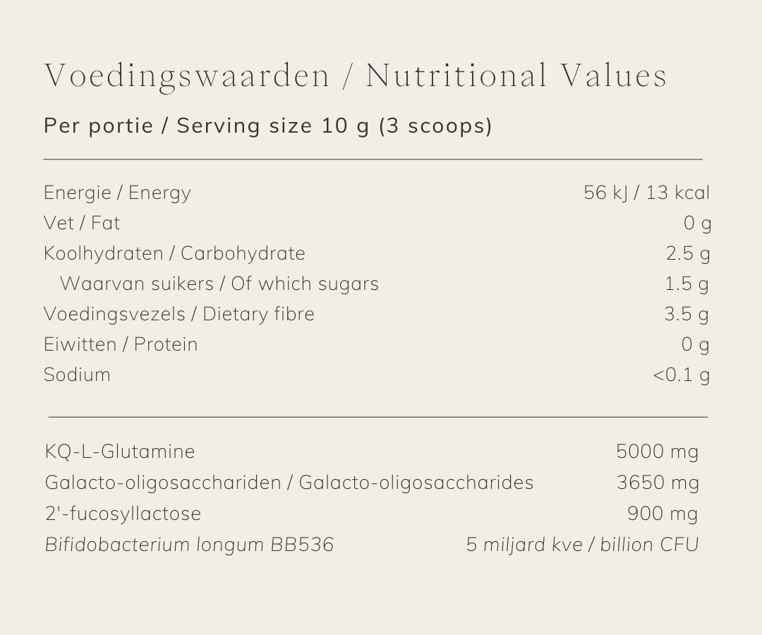 • Strengthens gut integrity and reduces inflammation with L-glutamine.